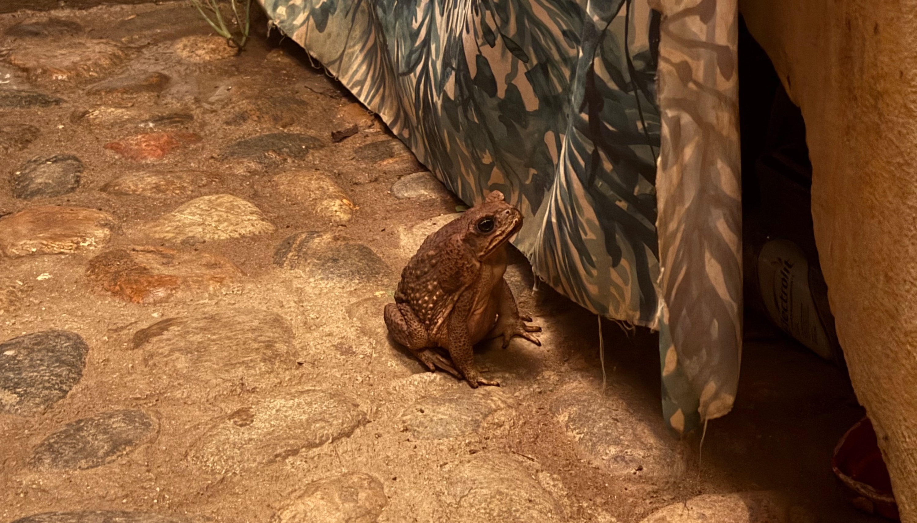 As I approached the showers, I stopped dead in my tracks. There, blocking the pathway was a sturdy, confident toad. He was easily the size of Mike Tyson’s fist.
