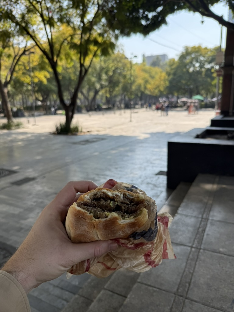 Finally, among the love hotels I found my tortería–a hole-in-the-wall joint with a line of workers hungry for a cheap fill on their lunch break. I ordered the first sandwich on the menu, paid my 50 pesos ($2.5) and bounded towards the Alameda Central with my sandwich, feeling almost smug that I had found this secret Bourdain-esque spot all by myself. I ate my Milanesa (Mexican schnitzel with cheese and pickled peppers) in peace. All was right and good.