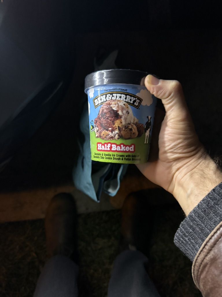 - Destroying some Ben & Jerry’s Half Baked. Amy also partook.