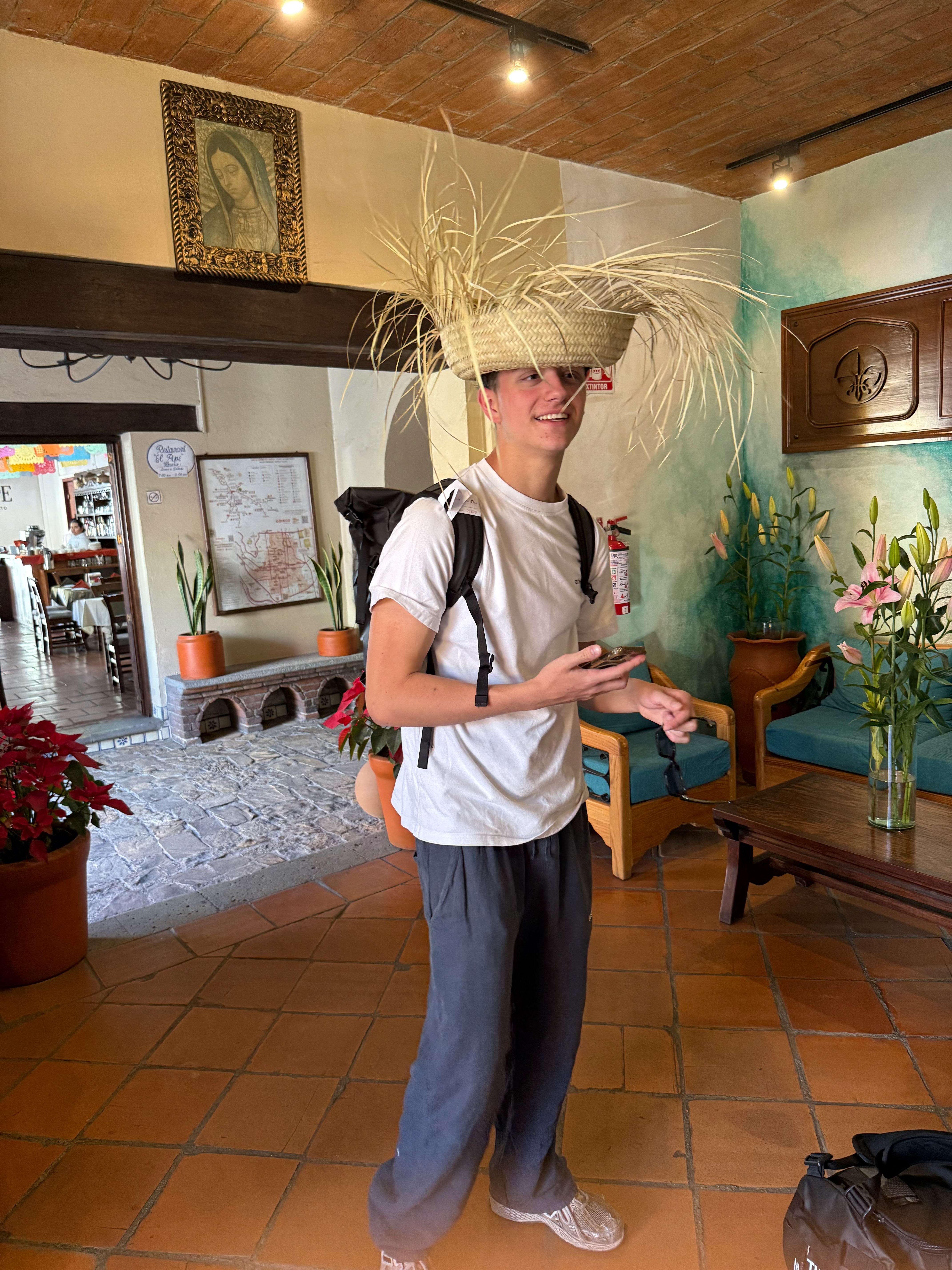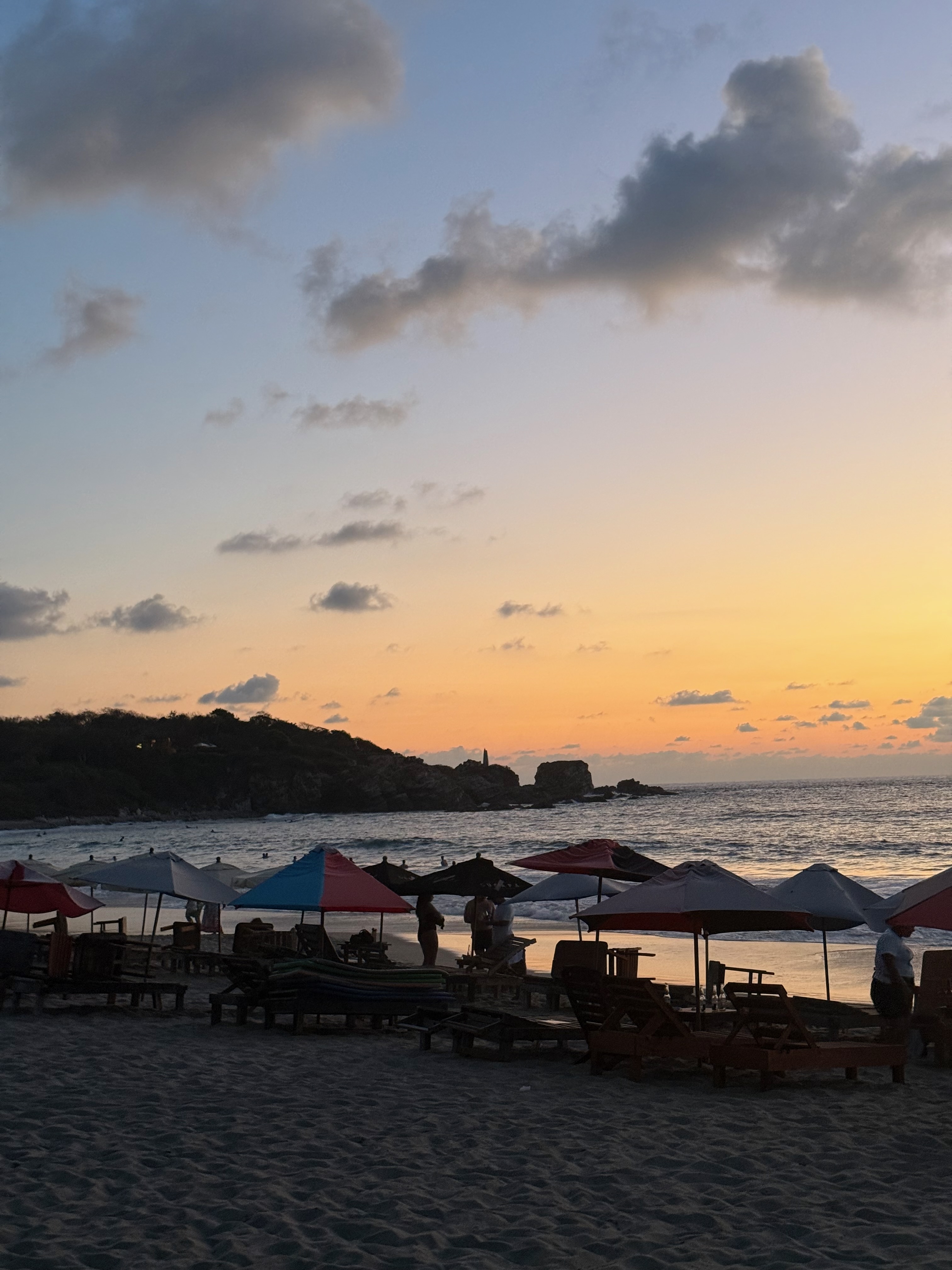 On Friday, I had my offboarding work call from a café sat between my two new friends. I had received a text from a colleague informing me that I was 30m late for a call with HR, so I had to scramble, flip open my laptop and join a Microsoft Teams call in order to listen to some guy from HR explain how my health insurance benefits would end at midnight. Looking around at some bright blue Oaxacan art on the wall, I tuned him out. I thought about how we had no travel arranged and we would shortly have to roam the dirt roads behind the market to look for a bus that would take us to the coast.